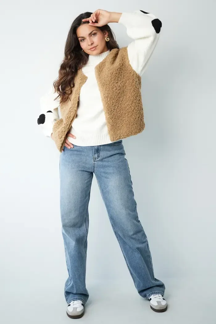 • Dit gilet heeft een mooi teddy stofje.