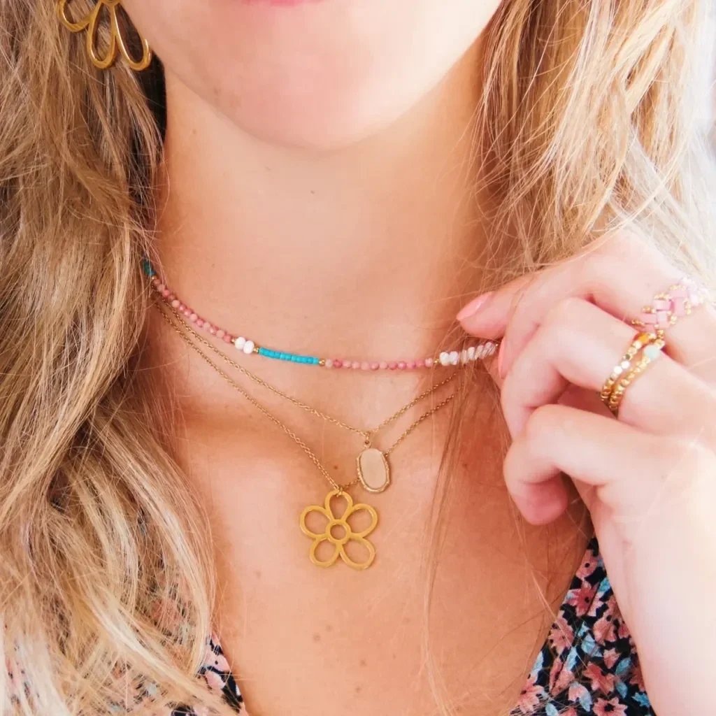 Facet kettinkje - oudroze/turquoise/parelmoer