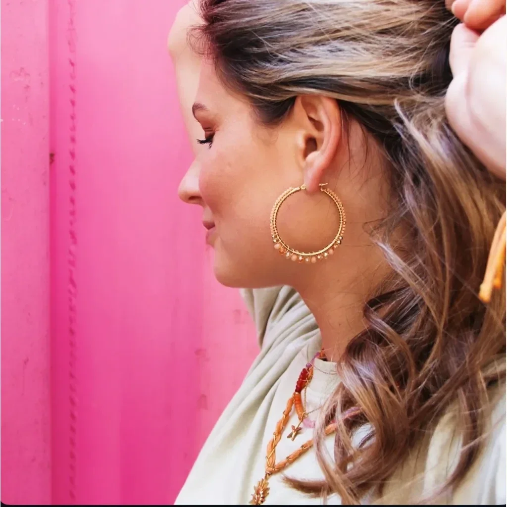 We love deze kleurrijke statement hoops! Deze mooie oorringen zijn een echte musthave. De oorring is voorzien van miyuki delica's en facetten. Combineer de oorbellen met goudkleurige studs of andere oorringen en je earparty is helemaal compleet!