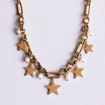Deze toffe statement ketting met verschillende bedels past bij iedere outfit. Take your look to the next level en combineer de ketting met onze andere sieraden.